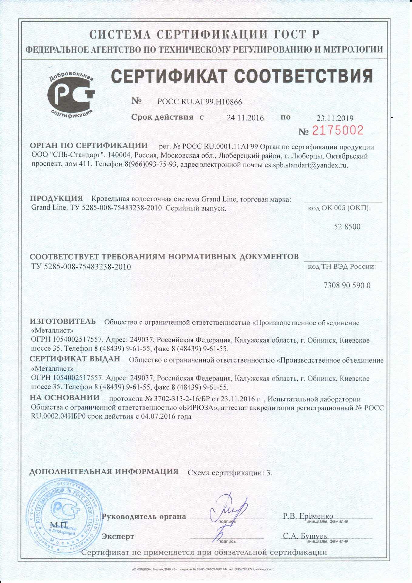 Подтвержденное сертификатами и действующими ГОСТ