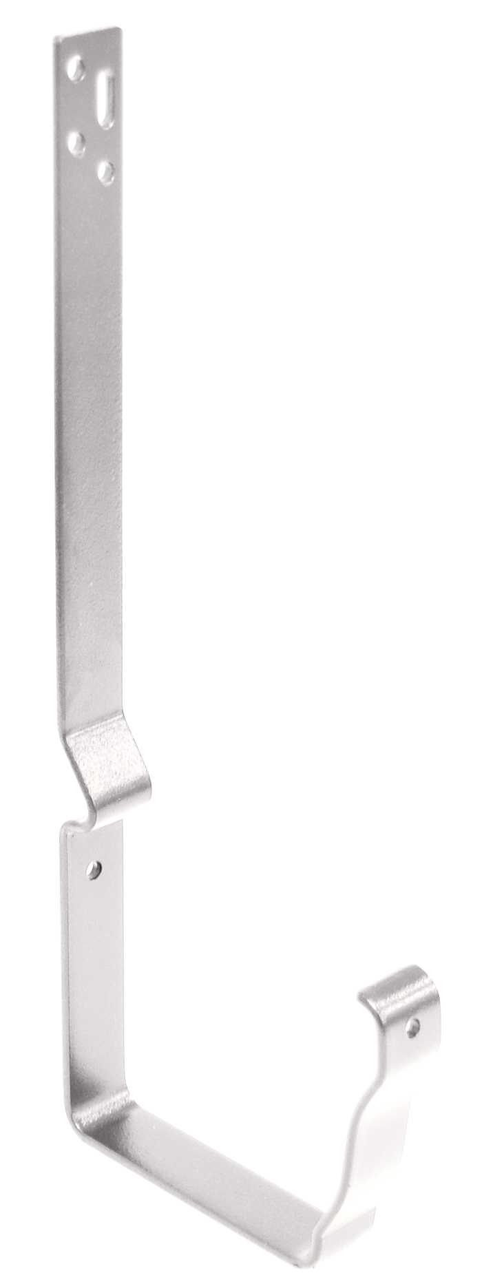 На крюке из полосы вместо пластинчатых фиксаторов предусмотрены технологические гибы, выполненные методом штамповки. Гибы геометрически точно повторяют форму желоба. Такая конфигурация крюка исключает как дополнительные операции для фиксации желоба в крюке, так и лишнее механическое воздействие на металл крюка и полимерное покрытие.